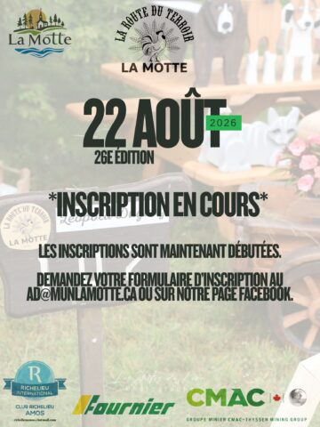 La municipalité de La Motte fait partie du territoire de la MRC d'Abitibi. Elle s'étend sur une superficie de 224 KM. Elle est nommée en l'honneur du militaire Guillaume-Jérôme Vacquier de Lamothe, l'un des capitaines du régiment de Béarn de l'armée de Montcalm. Lire la suite